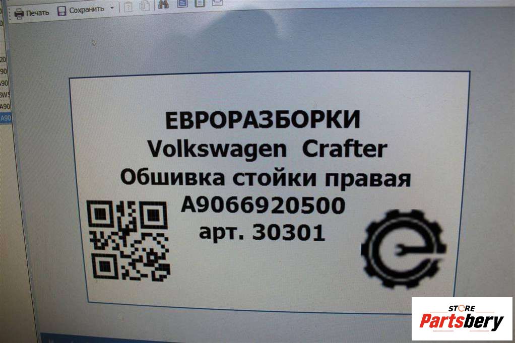 Обшивка стойки центральной правой (накладка) к Volkswagen Crafter 1, 2014