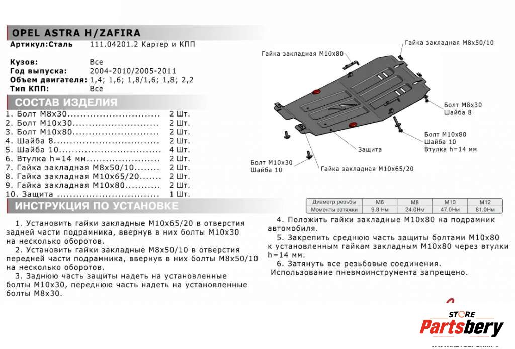 Защита двигателя к Opel Zafira B (2005-2014) Минивэн, 2011