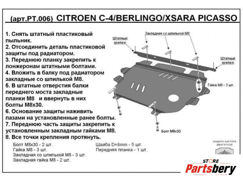 Защита двигателя к Peugeot Partner, 2012
