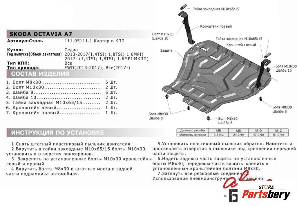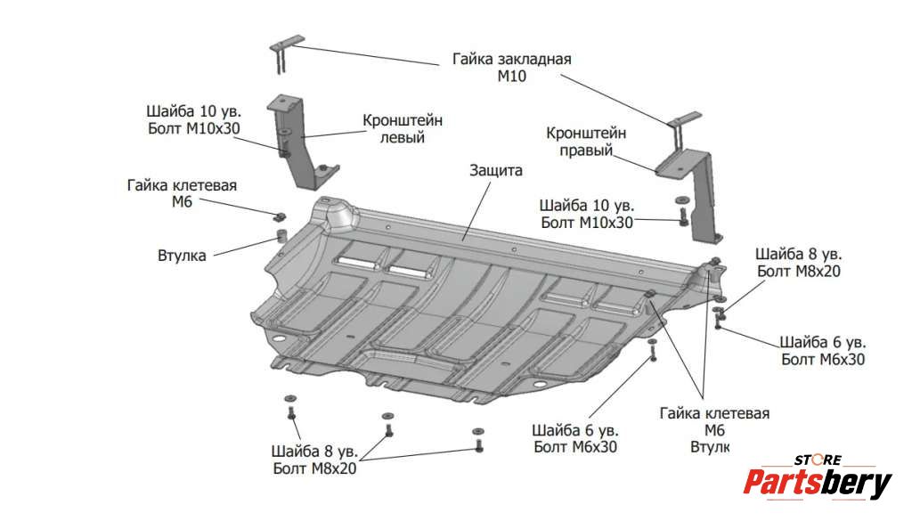 - Описание: Комплект крепежа пластиковой защиты двигателя