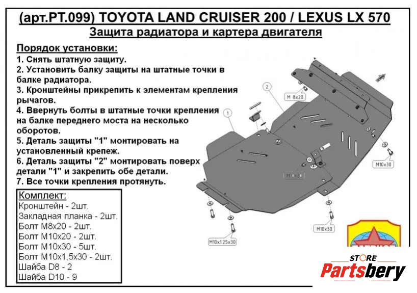 Защита двигателя Toyota Land Cruiser J200 (артикул 117920662)
