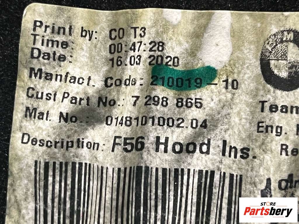 Шумоизоляция капота Mini Cabrio (артикул 123563302)