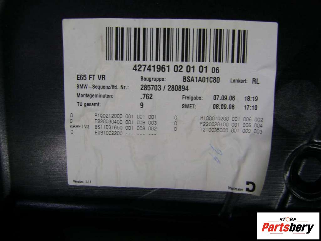 Шумоизоляция двери передней правой к BMW 7 E65/E66, 2006