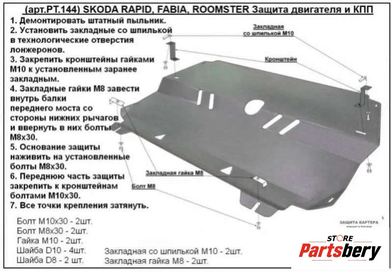 Защита двигателя к Skoda Fabia 2 рест. (2010-2014) Хэтчбэк, 2010