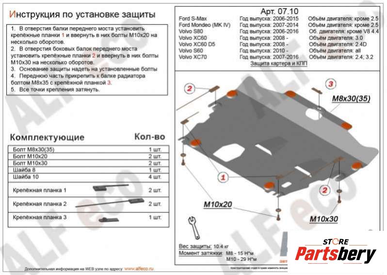 Защита двигателя металлическая к Ford Mondeo 4, 2008