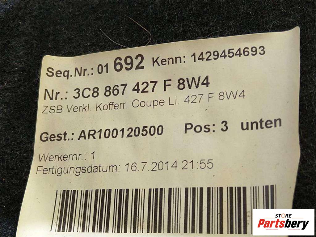 Обшивка багажника к Volkswagen Passat CC, 2014