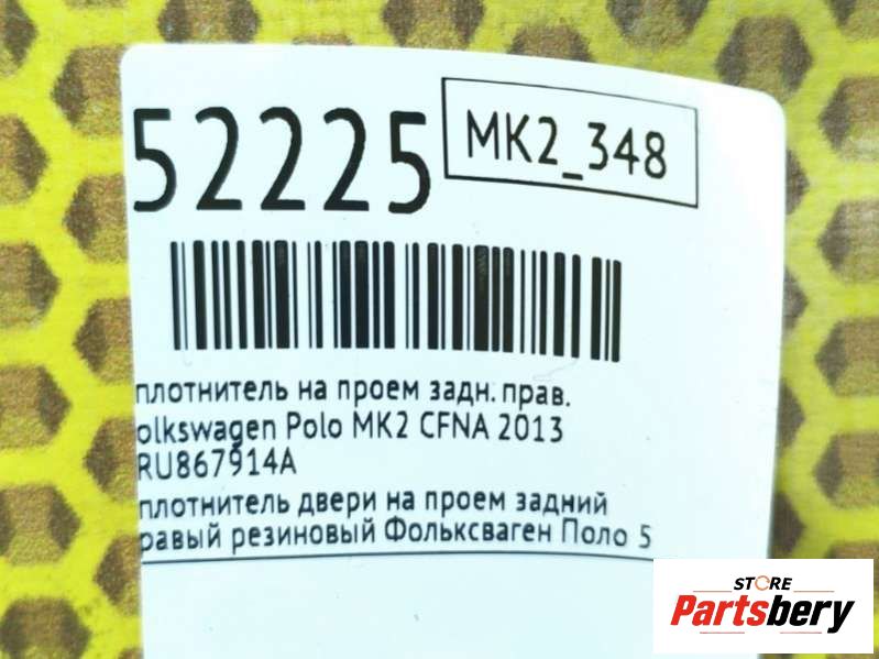 - Описание: Уплотнитель двери на проем задний правый резиновый Фольксваген Поло 5 бу оригинал