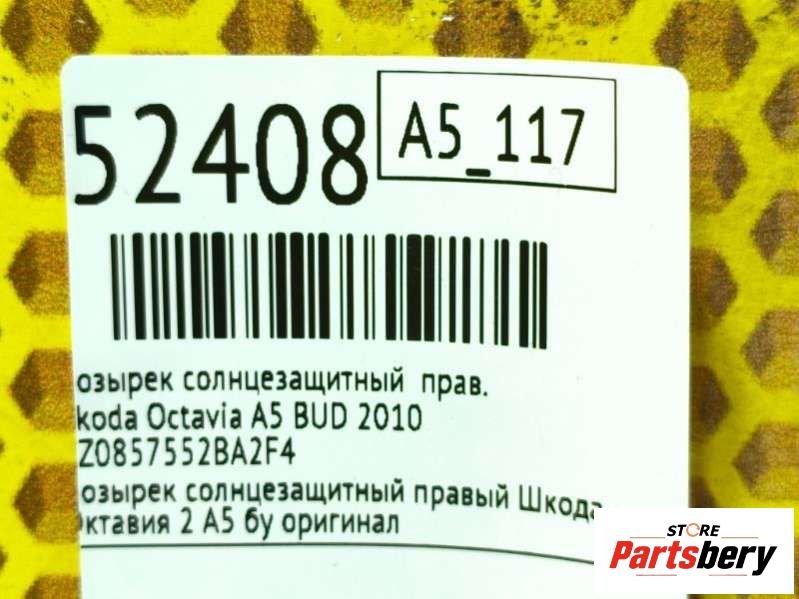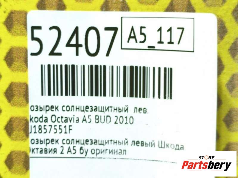 Козырек солнцезащитный Skoda Octavia A5 (артикул 146733230)