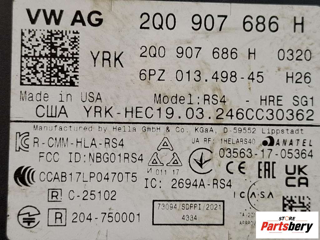 - Номер/маркировка: 2Q0907686A