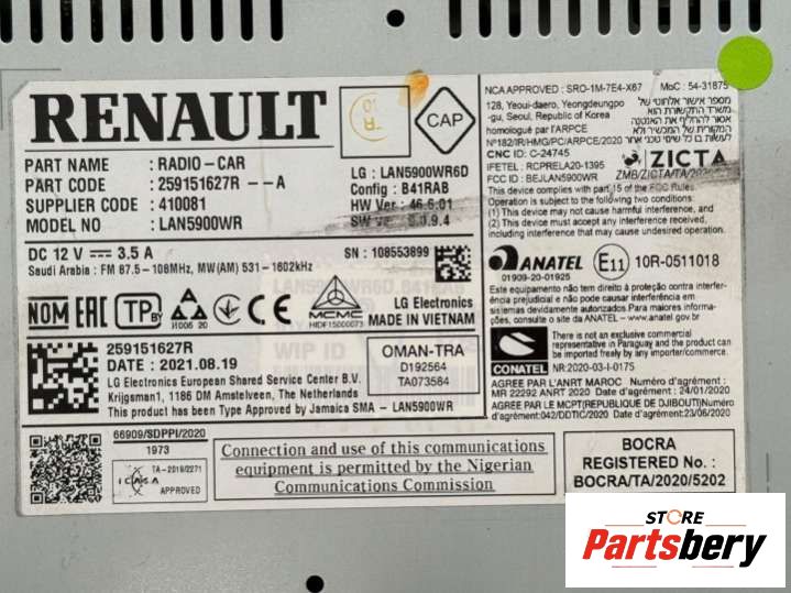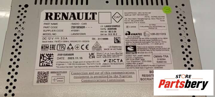 - Номер/маркировка: 259150937R
