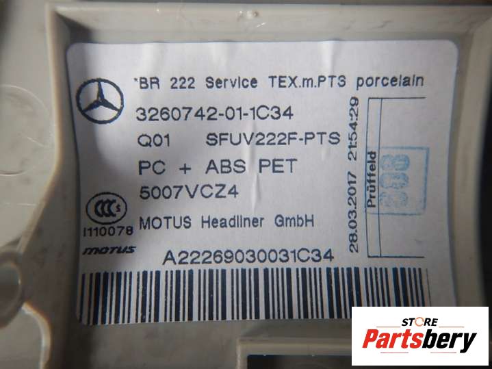 - Номер/маркировка: W222 A0009059300