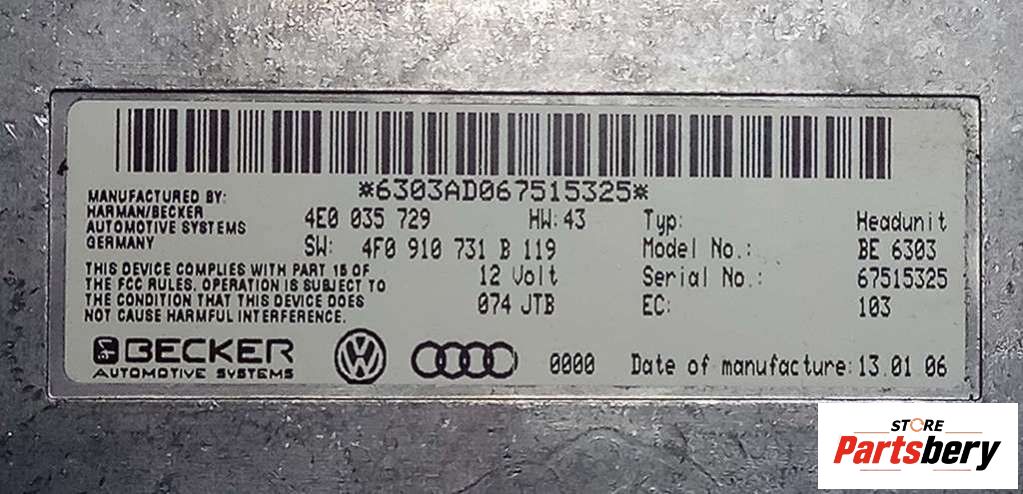 - Номер/маркировка: 4F0910731B4F0910731B11957501141