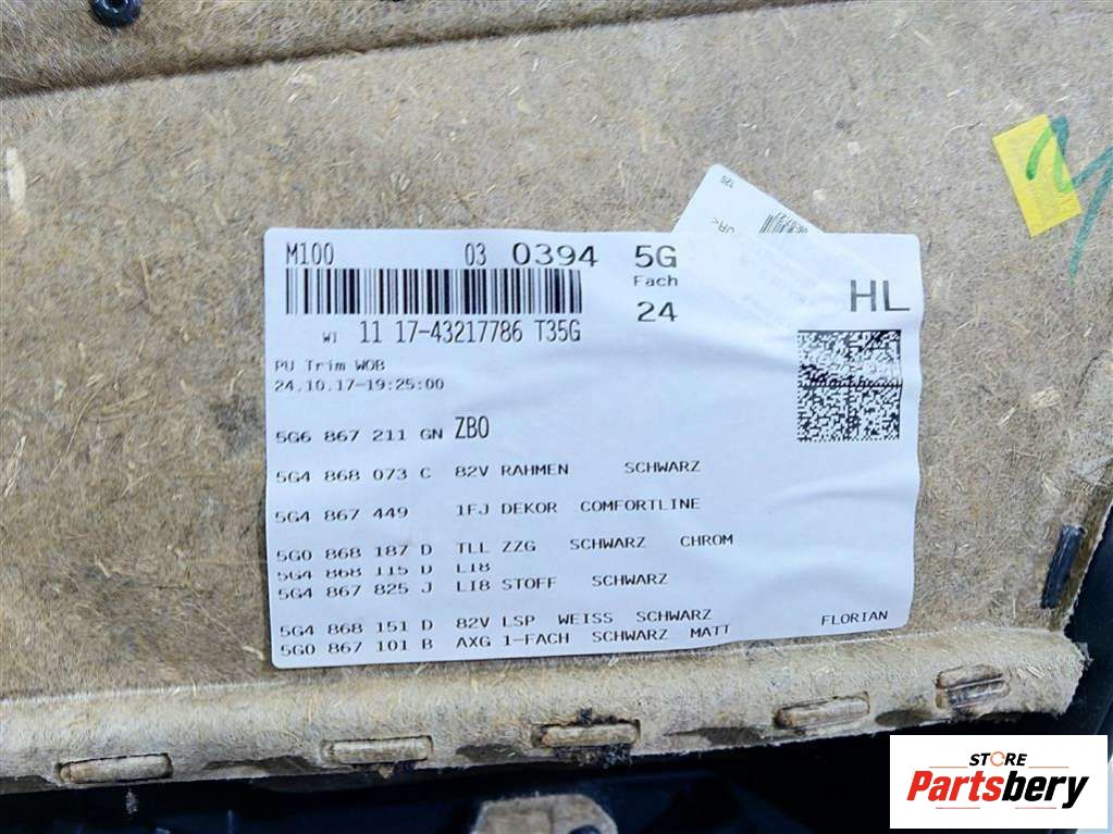 - Номер/маркировка: 5G6867211CQ5G4868073C5G4854771A5G0868187D5G4868115D5G4867825J5G4868151D5G0867101C5G4867487A