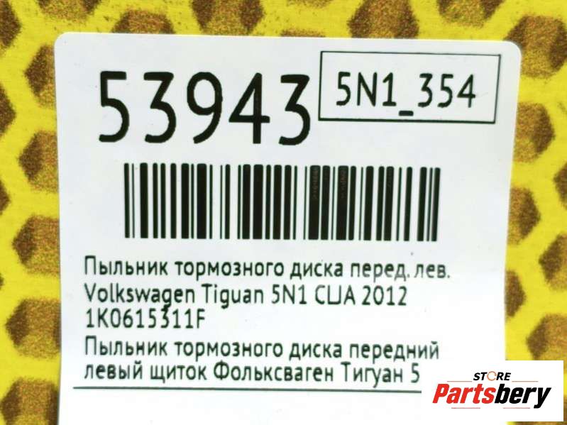 Пыльник тормозного диска к Volkswagen Tiguan 5N1, 2012