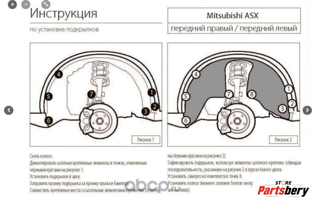Защита арок (защита крыла, подкрылок) передняя левая к MITSUBISHI ASX 1, 2010