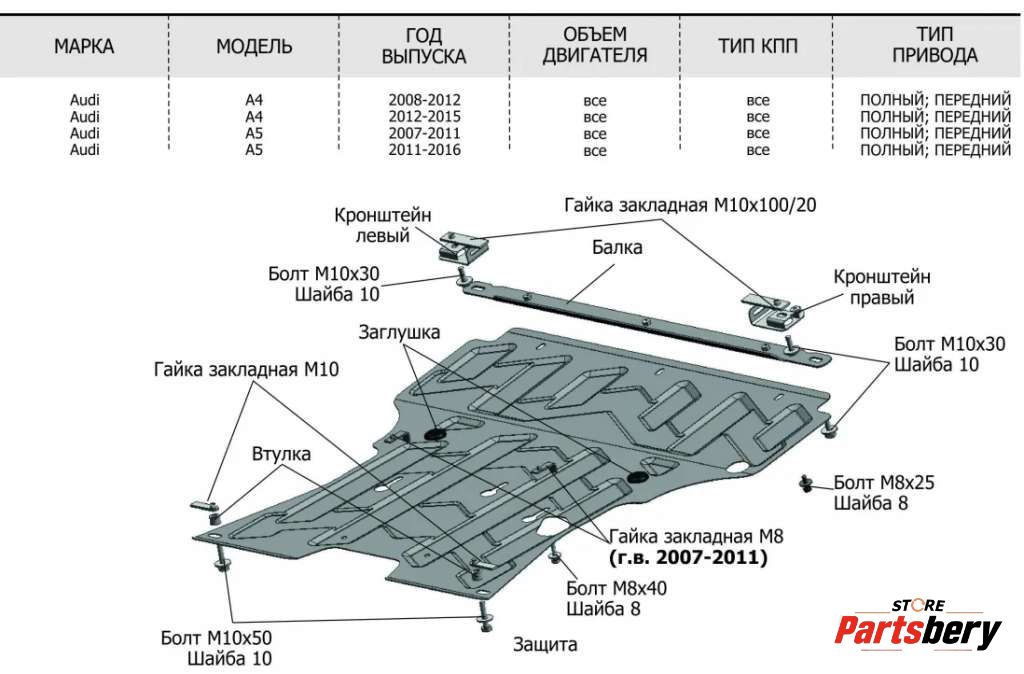 защита двигателя к Audi A5 (8T), 2009
