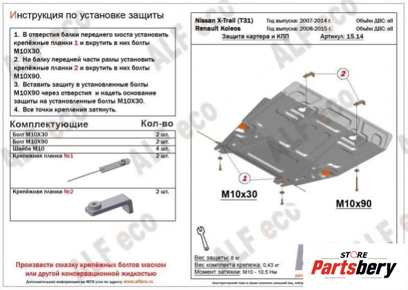 Защита двигателя к Renault Koleos (2008-2011), 2010