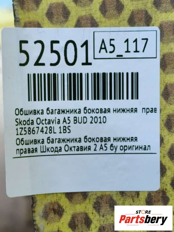 обшивка багажника к Skoda Octavia A5 1Z3, 2010