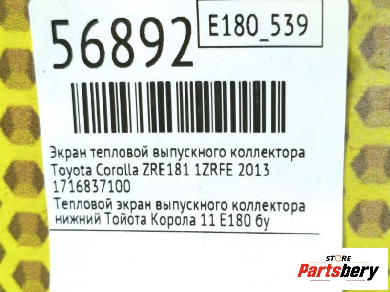 Экран тепловой выпускного коллектора к Toyota Corolla ZRE181, 2013