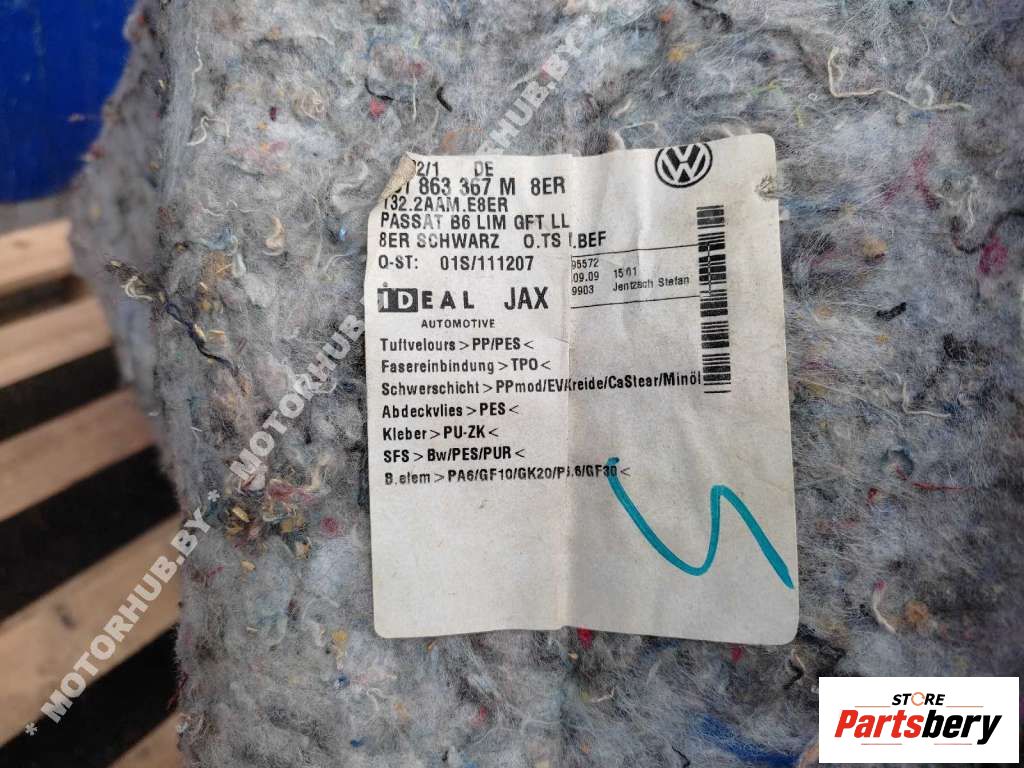 Напольное покрытие (ковролин) Volkswagen Touran (1T1) 1T1863367D9S4 к Volkswagen Touran