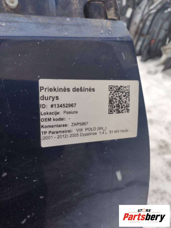 Дверь передняя правая к Volkswagen Polo 4 поколение [рестайлинг] (2005-2009), 2005